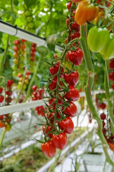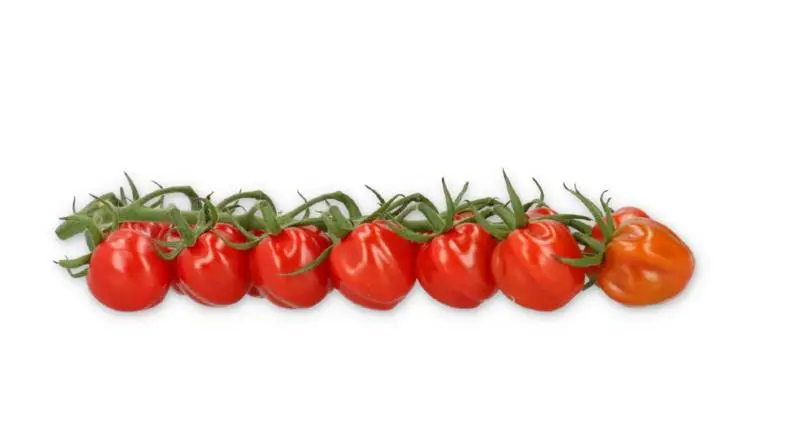 Красный кубовидный мини томат для сбора кистями для продлённого оборота и светокультуры. • плоды 18-20 г, очень сладкие, однородные по всей кисти • кисть плоская • Брикс 8,5-9 • высокий потенциальный урожай