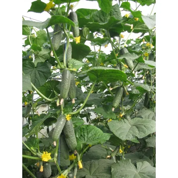Для выращивания в теплицах весной (посадка с февраля в 3-ей световой зоне), летом и осенью. Очень ранний гибрид. • Длина зеленца 9-13 см • При перерастании не принимает форму «бочонка», даже крупные плоды остаются цилиндрическими • 2-3 плода в узле • Сильная корневая система • Плоды высокого качества до конца вегетации